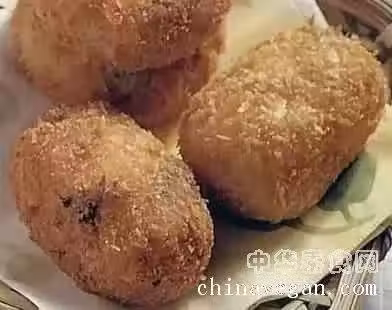 材料:白飯150克、素火腿100克、蘑菇50克、紫菜、鹽、胡椒、檸檬汁、少許、色拉油、麵包粉、低筋麵粉、適量。