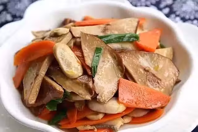 材料:茶乾,胡蘿蔔,蘑菇,油,鹽,素蠔油