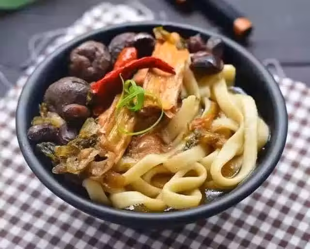 材料:麵條,金錢菇,腐竹,酸菜,辣椒,花生米,胡椒粉,食鹽,味全高鮮