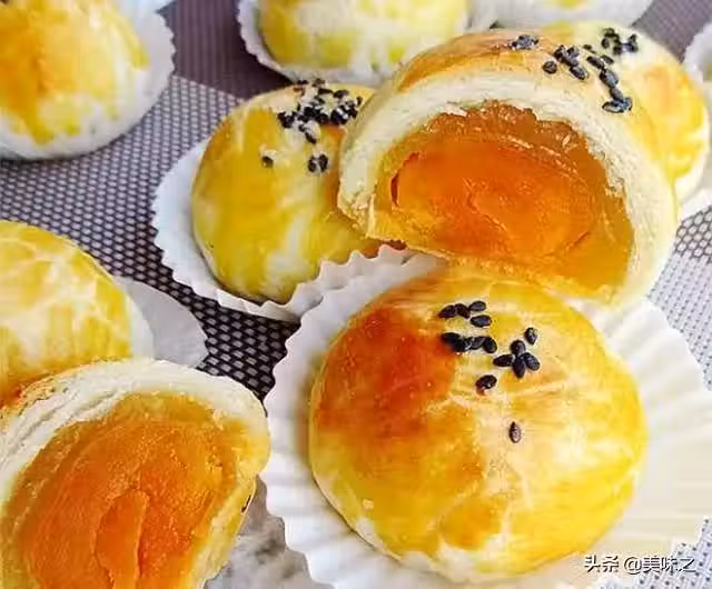 水油皮麥芯粉150g、水油皮食油53g、水油皮糖粉30g、水油皮清水60g、油酥麥芯粉120g、油酥食油60g、鹹蛋黃15個、綠豆蓉適量、黑芝麻適量。