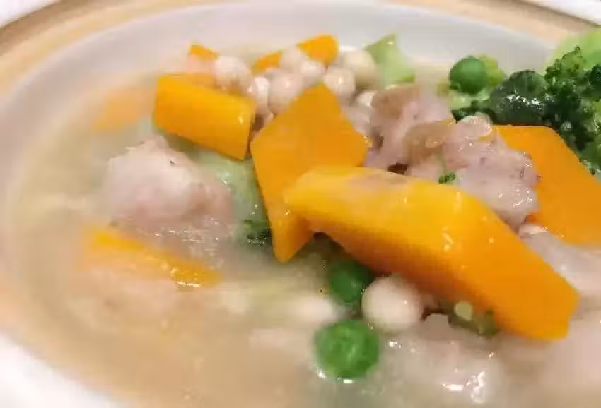 南瓜 200g 美人米 20g 椰漿 250ml 姜 2片 鹽 1茶匙 糖 2茶匙 油 1湯匙 大芋頭 200g