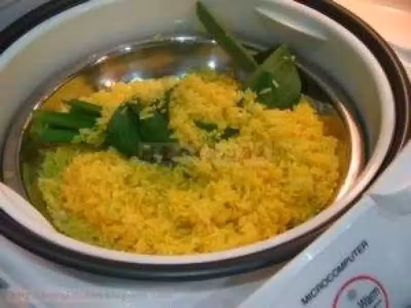 8. 同時候,將鹽加入濃椰漿中,並和糯米一起蒸約十五分鐘。