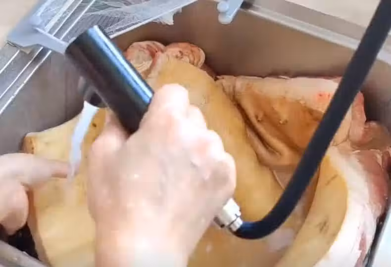 最後將整塊豬肉用清水沖洗干凈,這樣吃起來就不會覺得苦了。