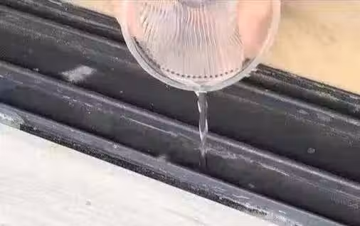 用杯子裝一些清水,然後直接倒進窗戶軌道的縫隙中,等待幾分鐘,確保軌道上面被水完全浸濕。