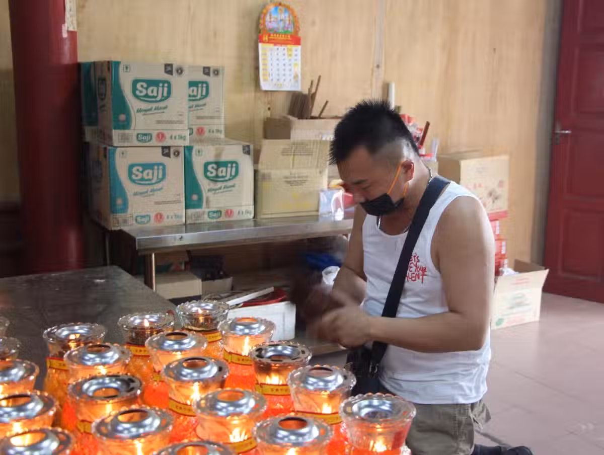 一名善信求籤,祈求菩薩解迷津。