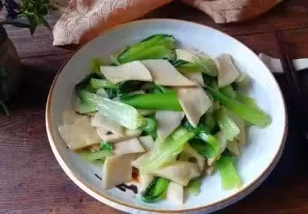下入油菜焯水1-2分鐘,待油菜顏色變深綠,撈出,
