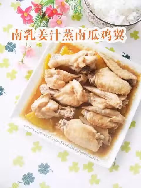 2) 將南瓜排在盤裡,鋪上做法(1),入鍋以大火蒸15分鐘即可。