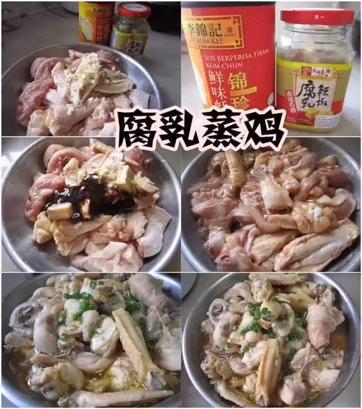 1. 雞肉洗乾淨, 加入腐乳耗油鹽攪拌均勻,可以加一點點水。
