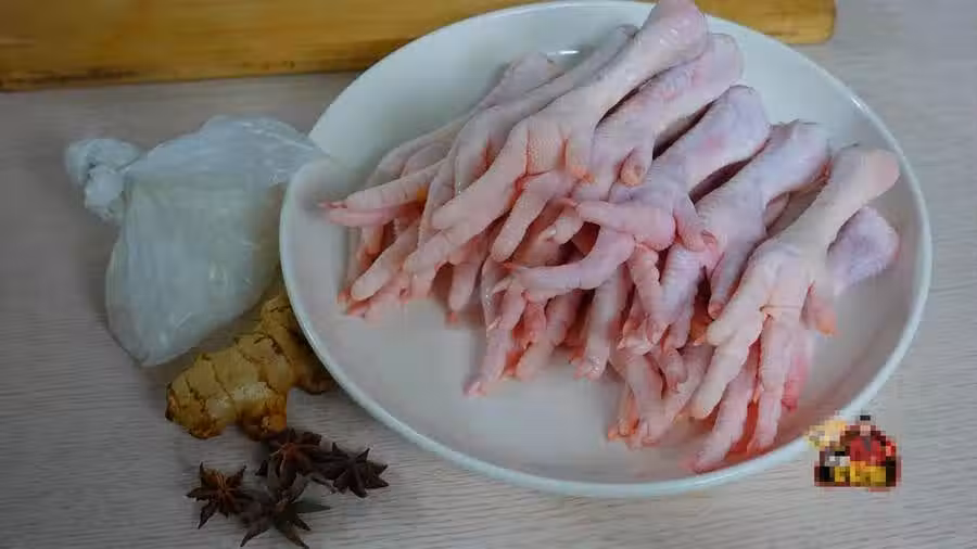 在開始正式製作之前呢,我們首先需要準備以下食材:新鮮雞爪500克,冰糖50克,八角5個,生薑1塊,老抽1湯匙,生抽半杯(一次性杯子的量),黃酒半碗,食鹽1茶匙