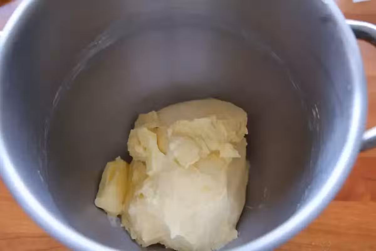 2、揉到黃油看不見了,再高速揉出薄而不易破的手套膜;