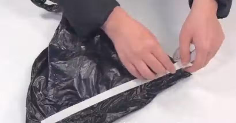 然後取出雙面膠,粘在塑料袋上。