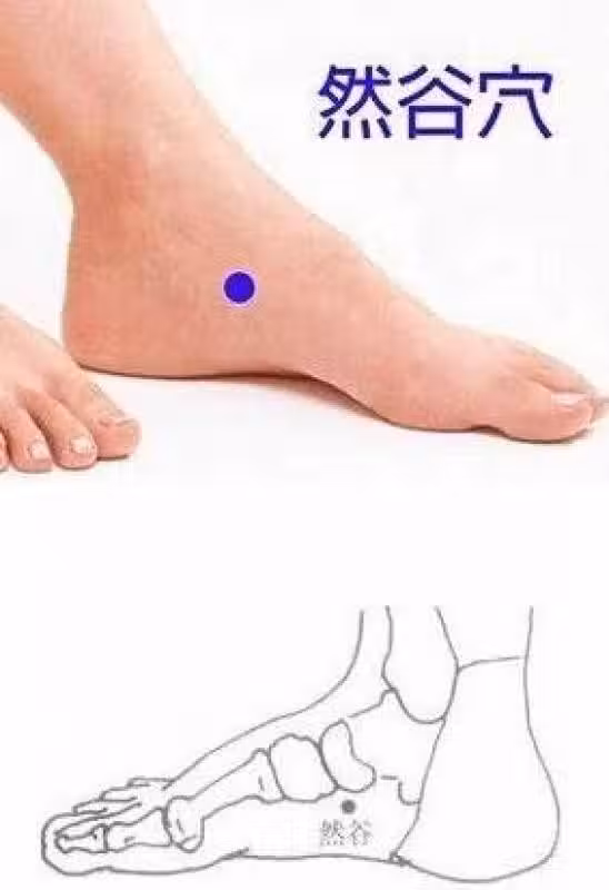 然谷穴:在足內側還有一個穴位,叫做然谷穴,按摩此穴位能有效的降低血糖,治療糖尿病。