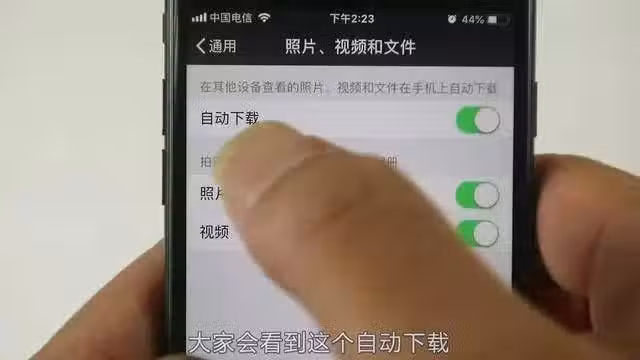 這樣我們想看哪一個的情況下我們就下載下來看,再就是下邊這一個照片跟視頻,這邊一般都是我們給朋友發送時,留下的照片跟視頻,這樣它會自動保存到我們手機相冊里,因為我們是發給朋友的,有時我們在手機上已經存了,但是發一遍它又在我們手機上再存一遍,這樣就會二次存儲,占用我們手機大量的內存,把這三個小開關關閉掉之後我們再返回,返回到上一層,這邊有一個儲存空間管理,大家看一下我們的微信占了這麼多儲存空間,