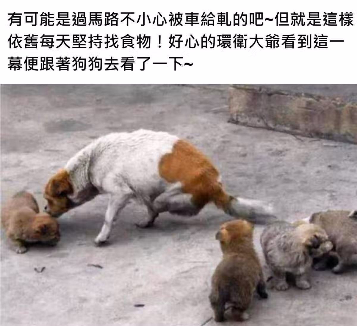 兩條腿的流浪狗到處翻垃圾桶,好心環衛大爺跟過去一看落淚了!母愛不分種族
