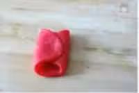 7.將處理好的紅黃油皮疊起來包入餡料,或者先用黃色包餡,再用紅色將黃色包起來