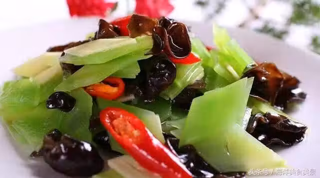 食材:青筍 500克、木耳 100克、紅椒 20克、蒜 15克、食用油 適量、鹽 1茶匙、糖 0.5茶匙、蠔油 1茶匙、生粉 1茶匙