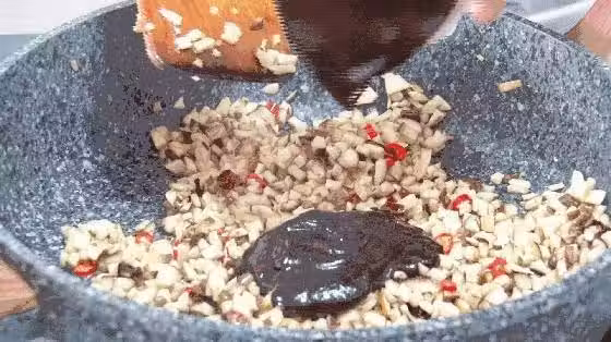 倒進500ml飲用水, 年夜水煮謝後小火煮10分鐘, 擱進花椒油