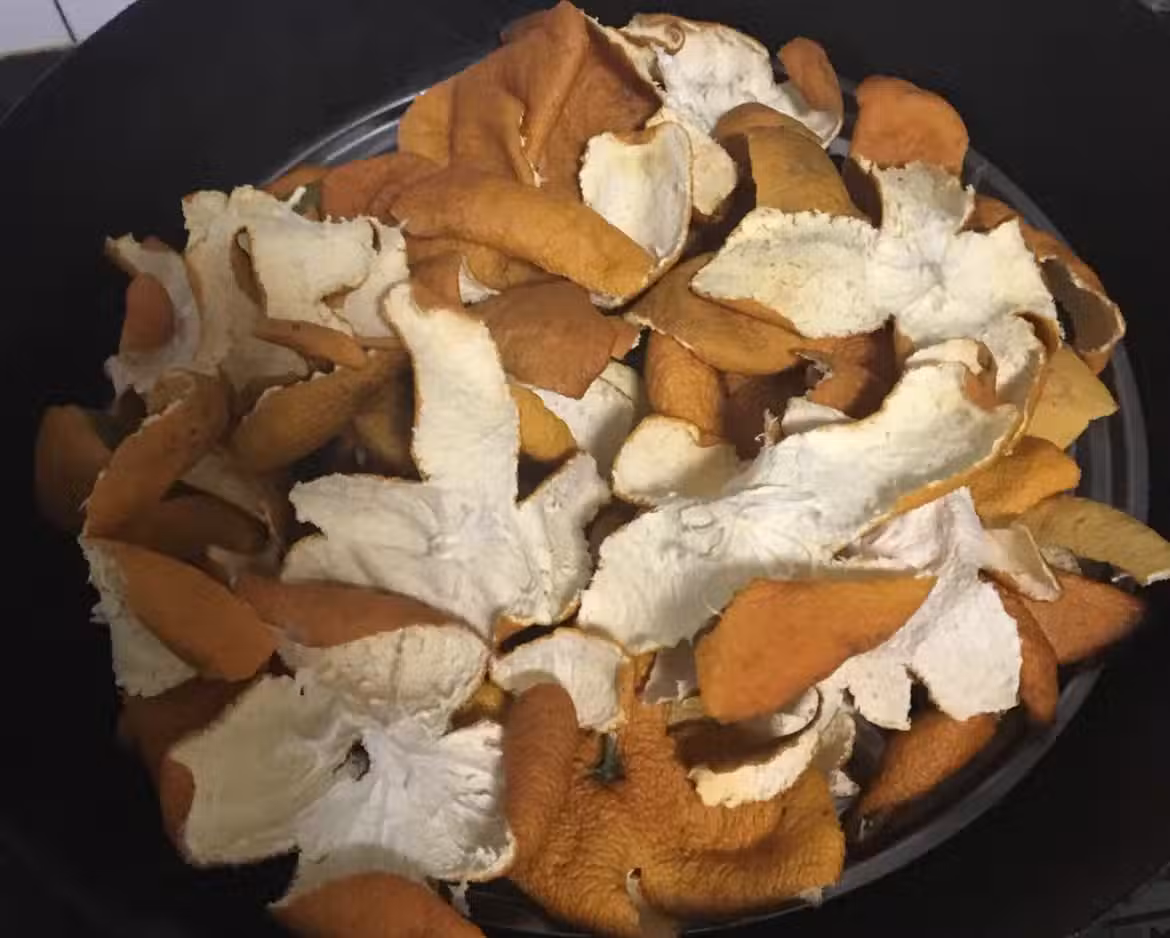 6、 曬乾的橘子皮,再次上鍋蒸20分鐘,蒸好了之後再將橘子皮曬乾;