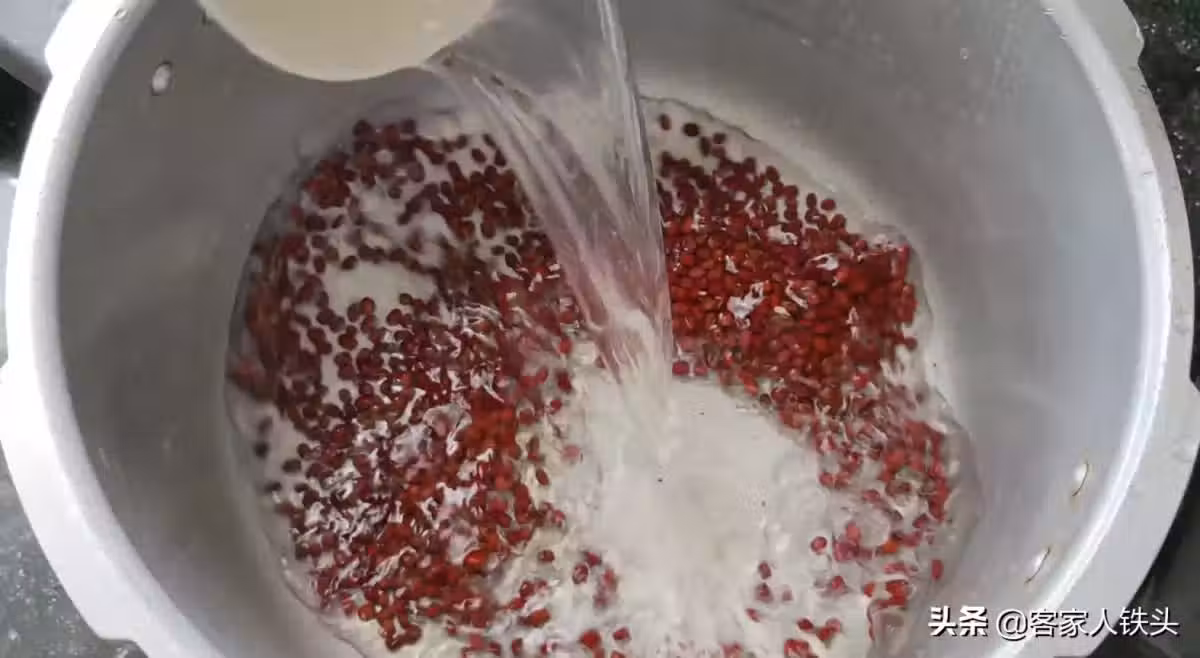 第二步:紅豆煲熟就行,不需要煲化,如下圖這樣的狀態最好,紅豆是一顆顆完整的,用手輕輕一捏就碎,軟軟的口感,吃進嘴裡就化了,煲好的紅豆要干身,不要帶汁水,所以上一步提到的水量,大家要掌握好,剛好煲干水最佳,煲熟的紅豆倒出來放一邊備用。