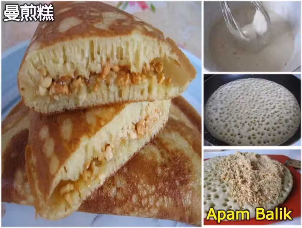 麵餅糊:普通麵粉 1杯,泡打粉 1茶匙,蘇打粉 ½茶匙,糖 3湯匙,蛋 1個,椰漿 ½杯,豆漿/牛奶 ½杯,香草精 ½ 茶匙
