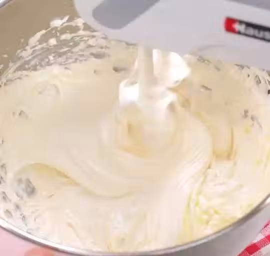 ⑦接著加入115g全脂奶粉,用刮刀翻拌至基本看不到乾粉的狀態,這里不要用脫脂奶粉,否則乳糖風味過於突出,會導致甜度過高。