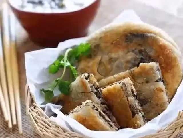 6. 平底鍋燒熱倒油,放入餅坯,烙至熟透即可。