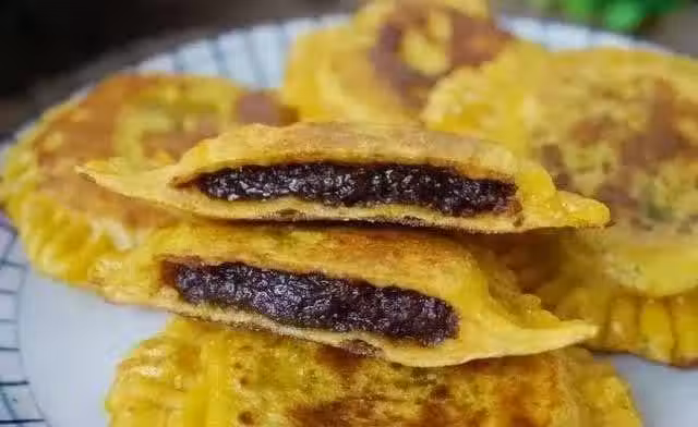 7. 平底鍋中放適量的油,放入豆沙餅,烙至兩面金黃出鍋。