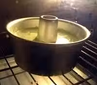 16、蛋糕出路後立刻從10釐米高處震一下,震出熱氣,這樣蛋糕不易塌陷,然後倒扣在瓶子上放涼