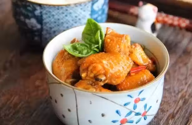 雞翅8個、土豆一個、紅辣椒3個、小綠椒1個,羅勒15g、大蒜頭3個、生薑片5片,黃酒兩湯勺、生抽一湯勺,油一湯勺、冰糖15g。