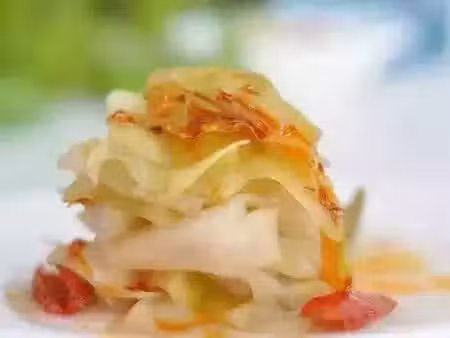 8)煮鍋里倒入清水,水開後關火,把捲心菜和青紅椒片焯水,撈出晾涼。