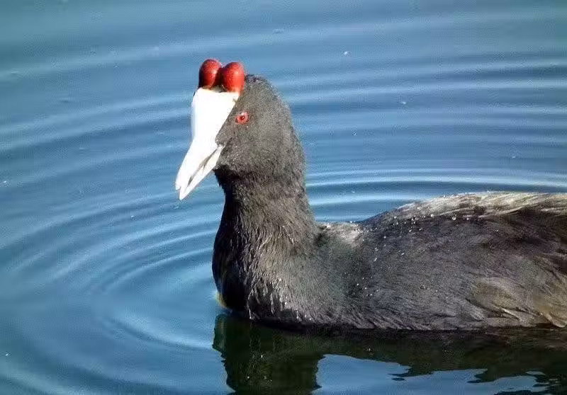 紅瘤白骨頂是一種奇特的水鳥,它最大的特點就是腦門上掛著兩顆櫻桃番茄——兩個紅瘤。