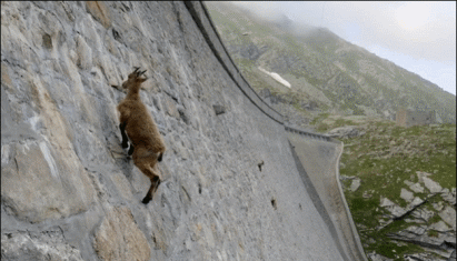 這些動圖讓人看了就心驚膽戰,高高的水壩上,巖羊不停地來回跳躍,如履平地……它們就不怕一個失足,掉下萬丈深淵嗎?
