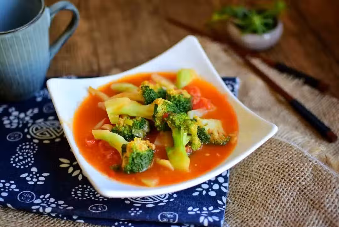 西蘭花200克,西紅柿|1個,油適量,鹽適量,水澱粉適量,姜5克