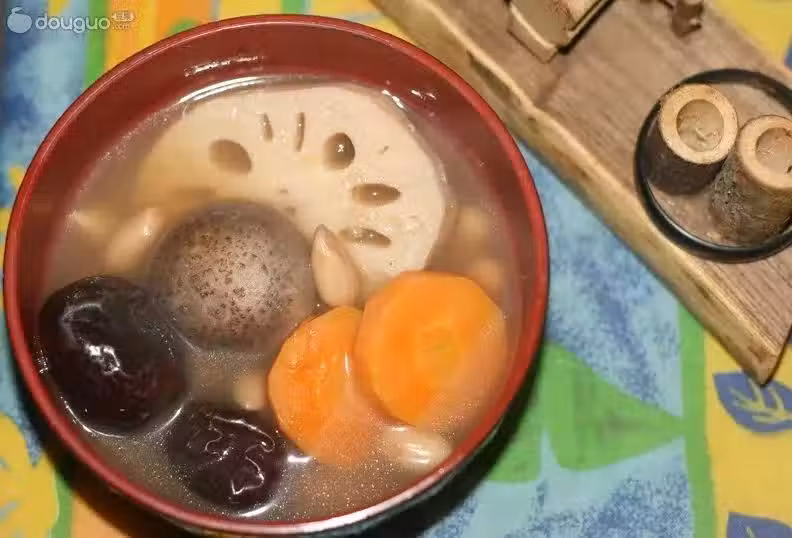 藕1節,胡蘿蔔1根,香菇,花生,紅棗,姜3-4片,鹽