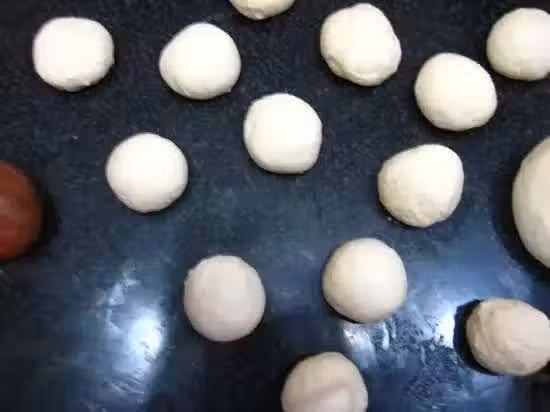 7、麵糰鬆弛好後,按扁,包入葡萄乾,收口朝下