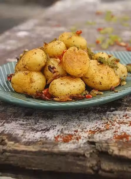 食材:一斤土豆、孜然粉適量、椒鹽、辣椒粉、白醋、油各適量。