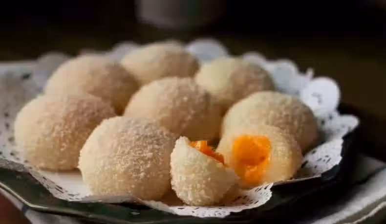8.將糯米滋放入椰絲中滾一圈,用手略略壓實即可。