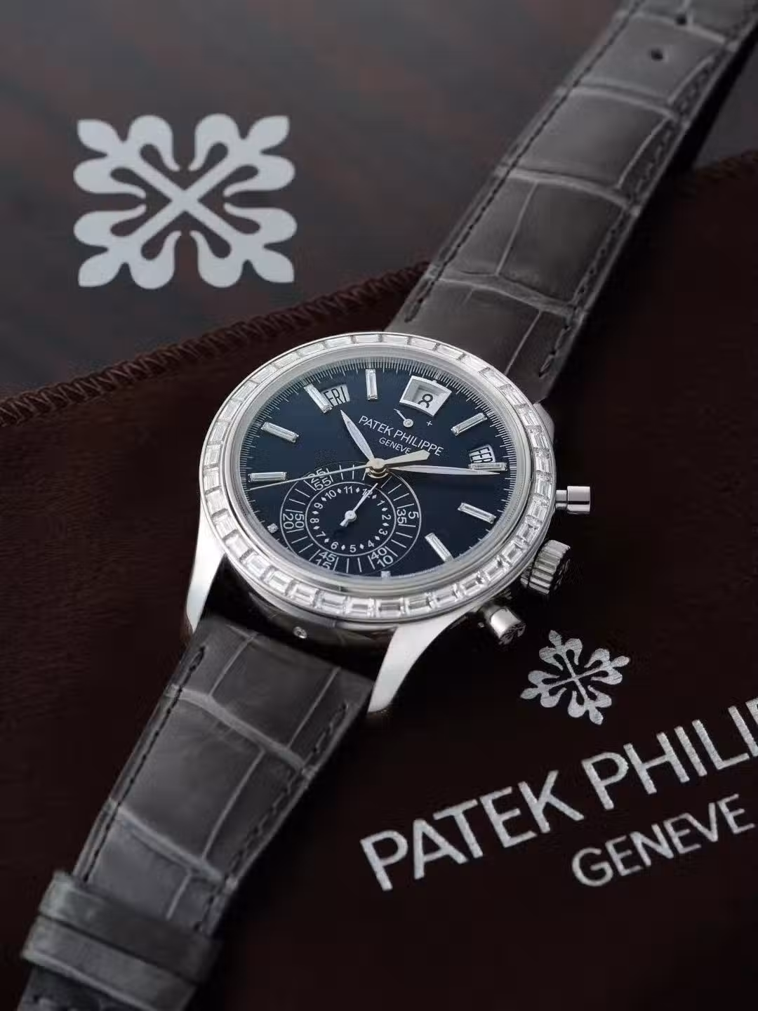 首次於2011年推出市場,型號5961在整個表圈都鑲滿了方形切割鑽石,不愧為型號5960的奢華升級。機芯方面也絕不遜色,配備自家研發的CH 28-520 C 機芯,具飛返計時及實用的年曆功能。透過腕錶的藍寶石水晶背蓋細看機芯,並能發現上面百達翡麗的「PP」 刻印,確保腕錶通過了最高級別的制表工序。