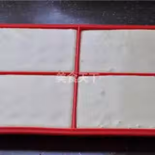9、將麵糊舀入華夫模具,這個量正好四片;