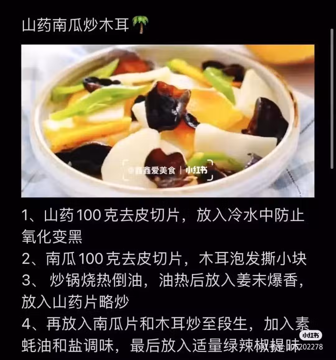 2、南瓜100克去皮切片,木耳泡發撕小塊