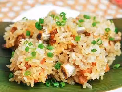 糯米200克、豬小排300克、細香蔥2根、五香粉1/2茶匙、醬油1/2湯匙、蚝油1/2湯匙、料酒1湯匙、植物油1/2湯匙、食鹽1/2茶匙。
