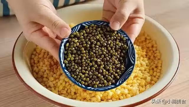 2、泡好的綠豆放在蒸屜上蒸熟,蒸到能輕鬆捏成綠豆泥時就可以了,大概需要半小時。