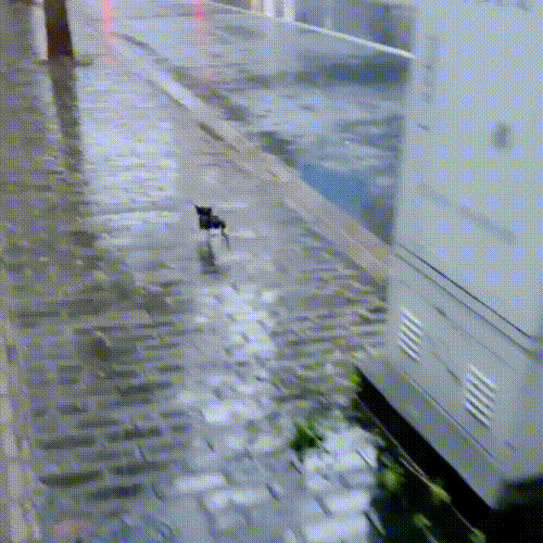 空曠的人行道上,那隻被淋成「落湯雞」的小貓,宛如一隻小老鼠般橫衝直撞,它似乎是在找地方躲雨,可惜這個世界很大,卻沒有一個地方是它的避風港。
