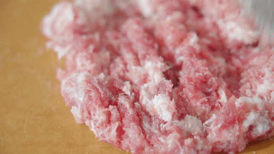 豬肉剁碎,不用太碎,有顆粒感為佳。(豬肉肥:瘦=2:8口感佳。)