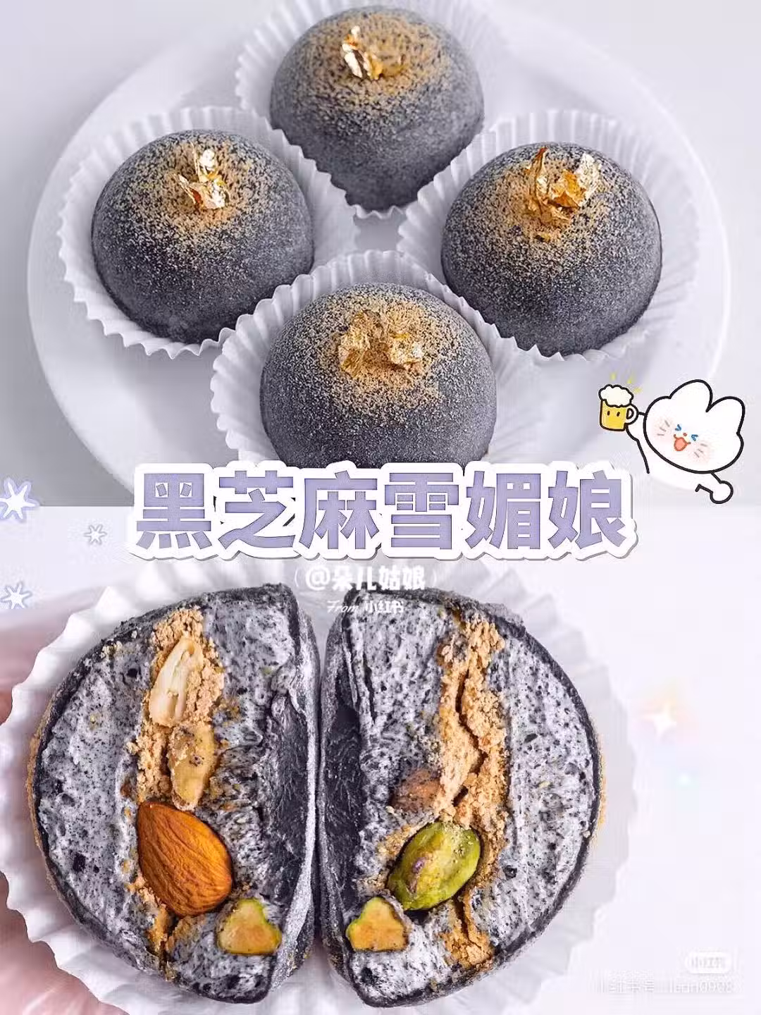 免烤箱一次成功‼️養生好吃 黑芝麻雪媚娘 雪媚娘的神仙吃法~