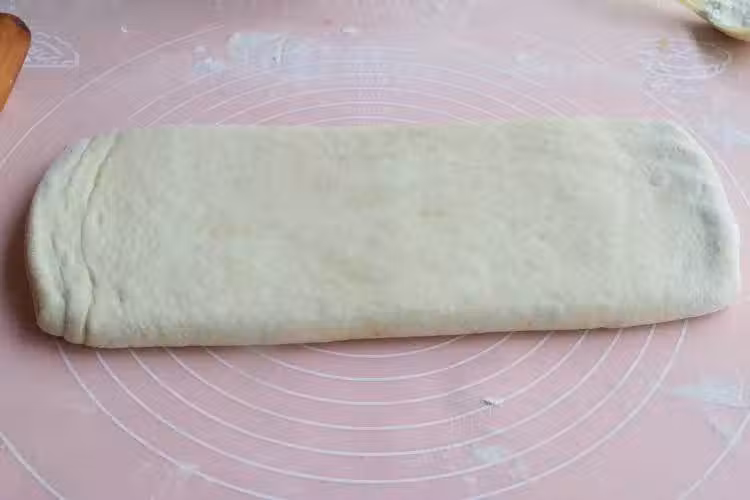 6、最後給它稍微搟薄一點,切成2指寬的條狀,再次稍微醒發鬆弛一會兒;