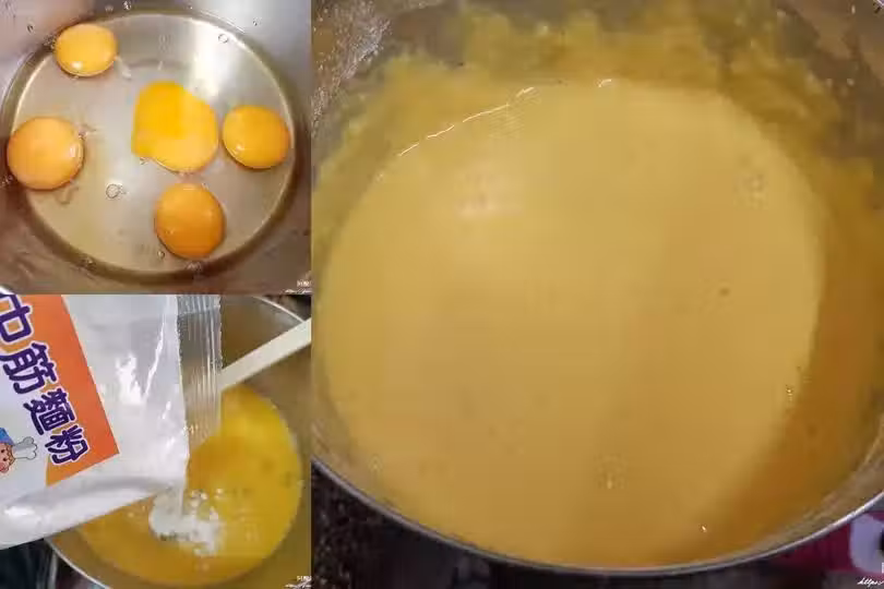 3、麵糊的比例其實沒有一定,會根據您所用的麵粉有所變動,基本上調成這樣的黏稠度即可,筷子拉起麵糊,不會像蛋液依樣立即滴落,而是有點黏稠度,這樣就可以了。