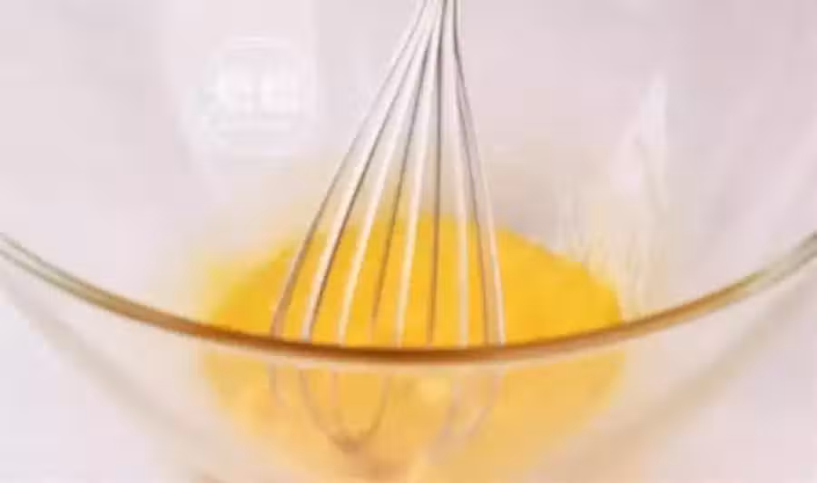 倒入牛奶,加入白砂糖,1茶匙香草精,攪拌均勻。