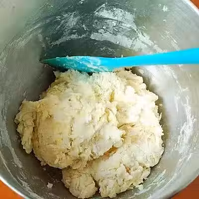 2、湯種、牛奶、鹽、糖、高筋麵粉、耐高糖酵母放入攪拌缸中,用矽膠刀攪拌一下,感受一下麵團的軟硬度。