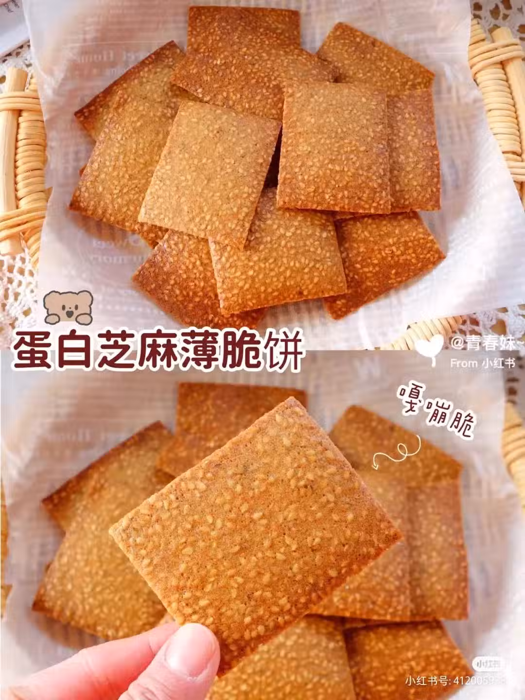 嘎嘣脆❗️香到爆炸~蛋白芝麻薄脆餅乾